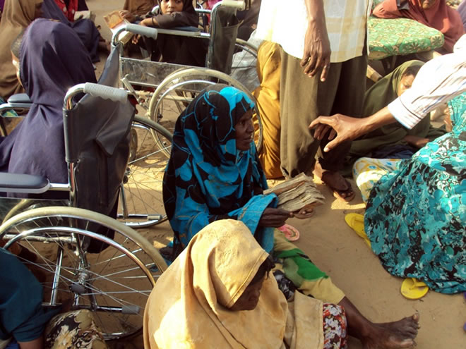 Talaado, Ogoosto 23, 2011 (HOL) – Deeqdaan lacageed oo ay soo dhiibeen gabdhaha Soomaaliyeed ee ku nool magaalada Melbourne ee dalka Australia ayaa loo qaybiyay maanta haweenka naafada ah ee barakaca ku jooga duleedka magaalada Muqdisho, gaar ahaan deegaanka Xaawo Cabdi.