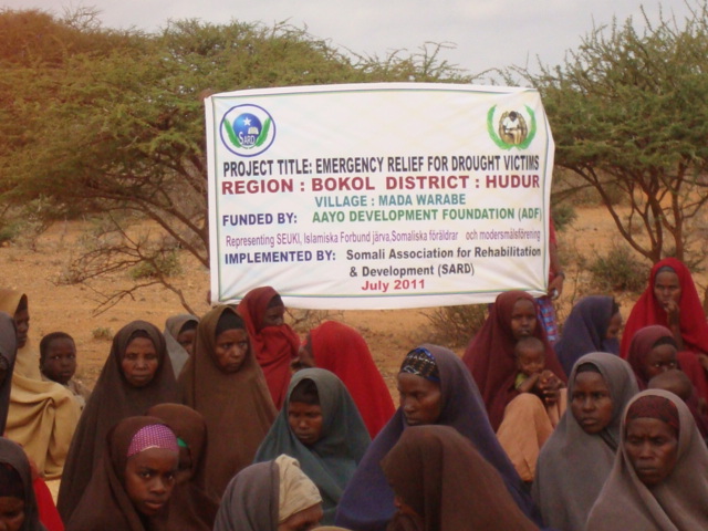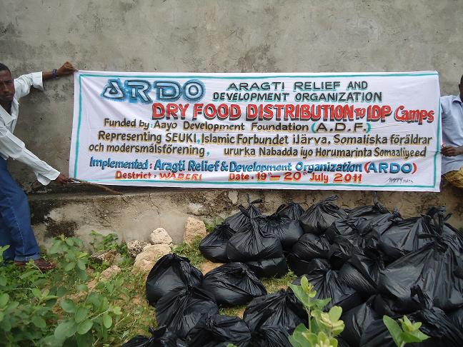 Jimco, 05 August 2011 (HOL): Ururka Aayo Develpment foundation (ADF) oo ka wakiil ah qaar ka mid ah maasaajidyada , ururada iyo ganacsatada Reer Sweden oo barnaamij raashin qaybin ah ka sameeyay gobolada Bakol, Bandir iyo Gedo.