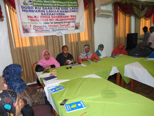 Arbaco, Maarso 09, 2011 (HOL) – Dood ay ka qaybgaleen in ka badan 50 ka mid ah haweenka suxufiyiinta ah ee Soomaaliyeed ayaa maanta lagu qabtay Hotel saxafi ee magaalada Muqdisho, taasoo gundhiggeedu ahaa sidii lagu horumarin lahaa haweenka suxufiyiinta ah ee Soomaaliyeed waxaana dooddan soo agaasintay ha'yadda CCD.