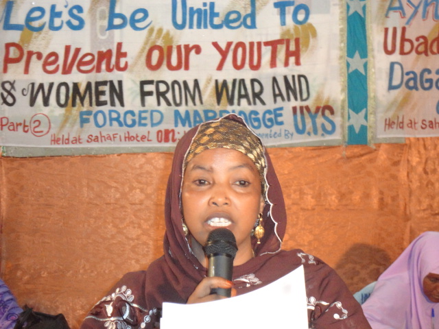 Khamiis, May 12, 2011 (HOL) – Hay'adda midowga dhalinyarada Soomaaliyed ee UYS ayaa siminaar ugu qabatay magaalada Muqdisho in ka badan 100 haween ah oo ka kala socday qaybaha bulshada Soomaaliyeed, iyadoo siminaarkan looga hadlayay qaabka ubadka looga badbaadin karo adeegsiga dagaalada iyo sida looga hortagi karo guurka qasabka ee haweenka.