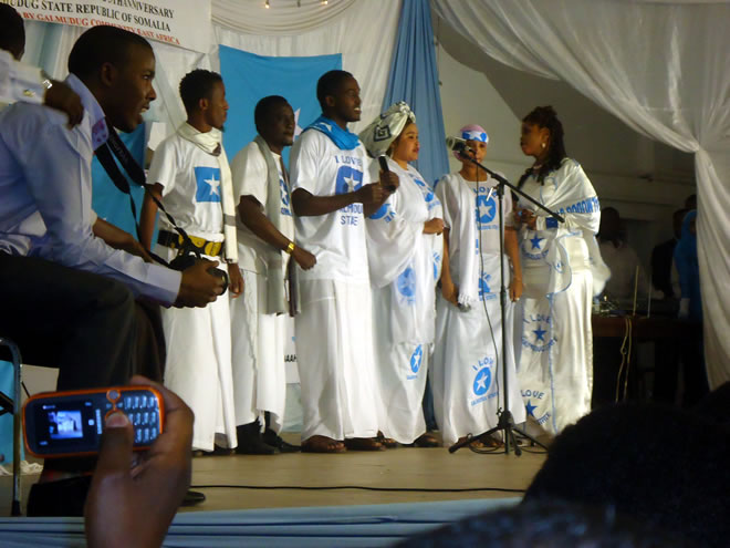 Axad, September 18, 2011(HOL) Nairobi . Kenya - Xaflad ay isugu yimaadeen boqollaal Soomaali oo habaynkii xalay ahaa ka dhacday bartamaha caasimadda Nairobi ayaa lugu xusay sanad guuradii 5aad ee kasoo wareegatay markii la isku raacay in tiirarka loo taago maamul goboleedka Soomaaliyeed ee Gal-mudug.