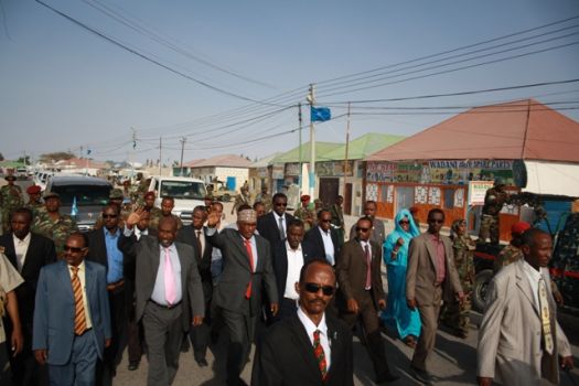 Madaxweynaha oo socod ku maray inta u dhexeysa aqalka madaxtooyada iyo fagaaraha (Barxadda) ayaa intaas kadib si kooban bulshada ula hadlay, wuxuuna ugu hanbalyeeyey 14 guurada kasoo wareegtey xiligii maamulka Puntland la dhisay.