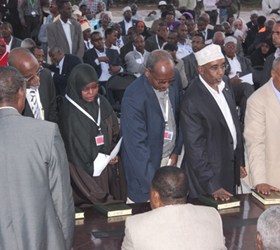Xildhibaannada ka qaybqaadanaya kulanka maanta ayaa ah 211 xubnood ee xalay la dhaariyay, kuwaasoo ay ka mid yihiin ra'iisul wasaarihii Soomaaliya Cabdiweli Maxamed Cali iyo guddoomiyihii baarlamaankii hore, Shariif Xasan Sheekh Aadan.