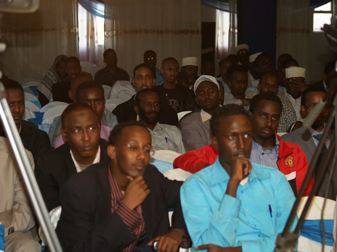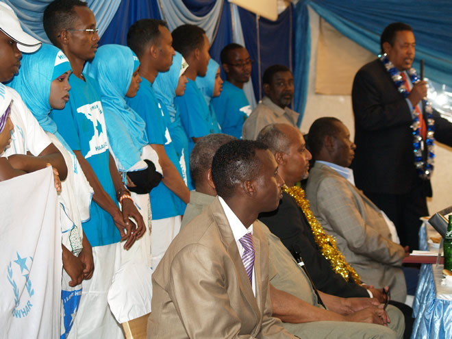 Sabti, February 11, 2012(HOL): Xaflad ay kasoo qaybgaleen boqolaal dadweyne ah oo lagu qabtay hotelka Andulus ee magaalada Nairobi ayaa looga dhawaaqay in la isku daray maamullada Hiiraan State iyo Middle Shabelle State (Shabeellaha dhexe) oo ay kala hogaamiyaan Maxamuud Cabdi Gaab (Hiiraan State) iyo Cali Madaxey Jawle (Middle Shabelle State).