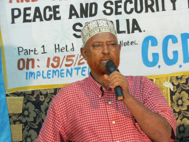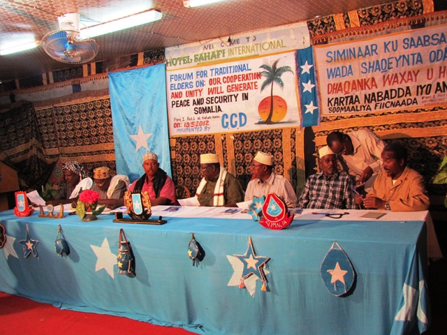 Sabti, May 19, 2012 (HOL) — Siminaar ay soo qabanqaabisay Hay'adda CCD halku dhiggiisuna ahaa "Wada-shaqeynta odayaasha dhaqanka waxay horseedi kartaa nabadda iyo amniga Soomaaliya oo fiicnaada" ayaa maanta loogu qabtay Muqdisho odayaasha-dhaqanka Soomaaliyeed.