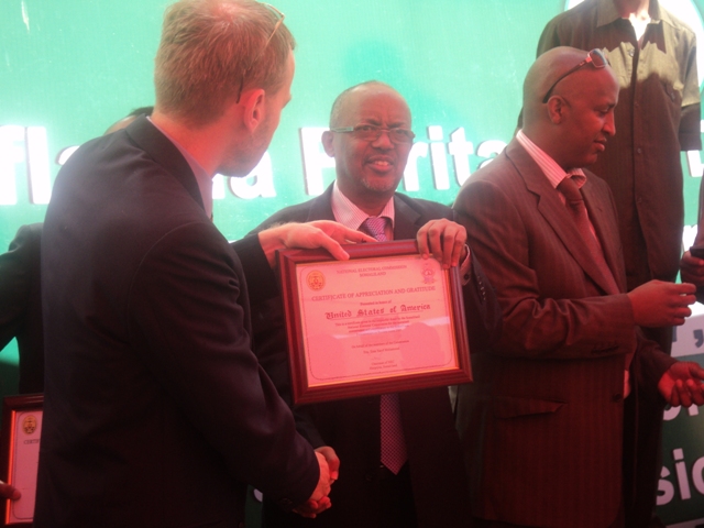 Waxa kale oo xafladaasi ka hadlay Afhayeenka Komishanka doorashooyinka Md. Maxamed Axmed Xirsi (Geelle), Wasiirka warfaafinta Md. Boobe Yuusuf Ducaale iyo Guddoomiyaha Barriga iyo badhtamaha hay’ada Inter-peace Cabdiraxmaan Maxamuud Raagge.