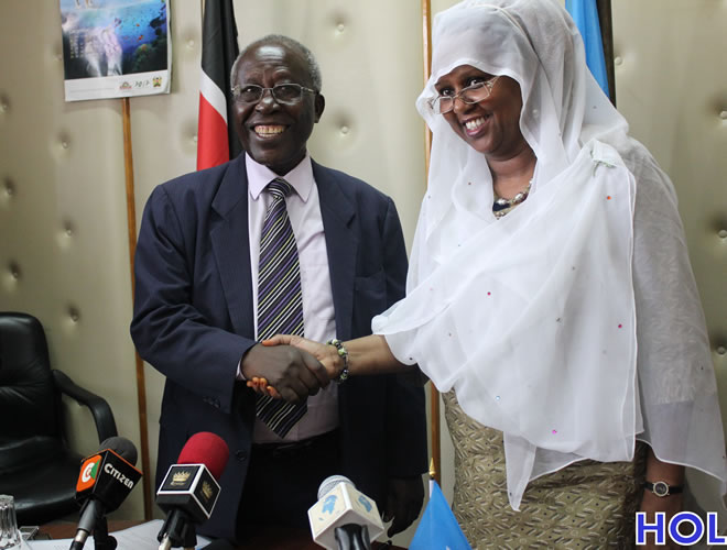 Talaado November 27, 2012 (HOL) Ra’iisul Wasaare ku Xigeenka ahna Wasiiradda Arimaha Dibedda ee Soomaaliya Marwo Fawsiya Yuussuf Xaaji Aadan ayaa magaalada Nayroobi kula kulantay Wasiirka Arimaha Dibedda Kenya Proff Samson Ongeri kaasi oo ay guddoonsiiisay dhambaal uu Madaxweyne Xassan Sheekh Maxamuud soo gaarsiiyay dhigiisa Dalka Kenya Mwai Kibaki.
