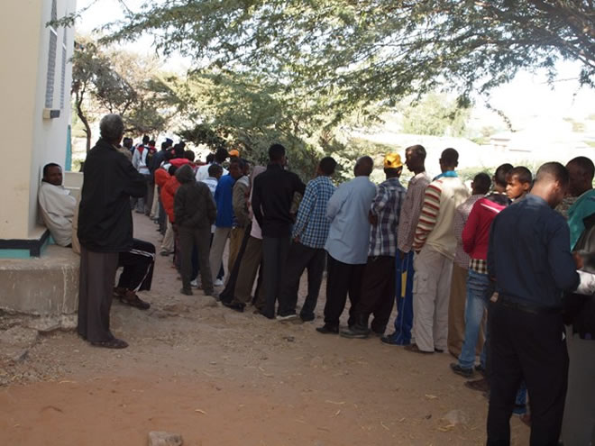 Arbaco, November 28, 2012 (HOL) — Guud ahaan gobolada iyo degmooyinka Somaliland waxa si weyn loogu dareeray sidii dadweynuhu ugu codayn lahaayeen musharaxiinta ka sharaxan degmooyinkooda, waxaanay Dadweynuhu saaka arooryadii hore safaf dhaadheer u galeen goobaha laga codaynayo, iyagoo si degan ugu jira sefefka una samraya cadceedda kulul iyo wakhtiga dheer ee ay ku jiraan safafka.