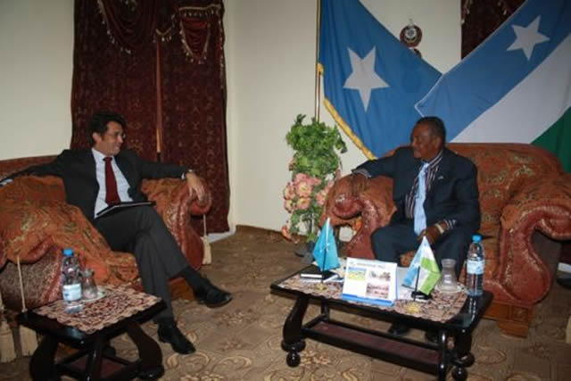 Axad, October,21, 2012 (HOL)- Xarunta maamulka Puntland ee Garoowe, waxaa maanta soo gaarey wefdi heer sare ah oo ka socda ururka midowga Yurub, uuna horkacayey safiirka cusub ee midowga Yurub u qaabilsan arimaha Soomaaliya, Michele Cervone.