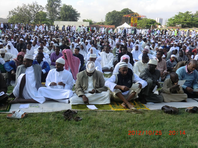 Jimco, Oktoobar, 26, 2012 (HOL) -Muslimiinta ku dhaqan magaalada Nairobi ee caasimadda dalka Kenya ayaa maanta siweyn ugu dabaaldegay munaasabadda Ciidda Barakeysan ee Ciidul Adxa , iyadoona la arkayay kumannaan dadweeyne ah oo saladda ciidda ku oogaya fagaareyaal kala duwan.