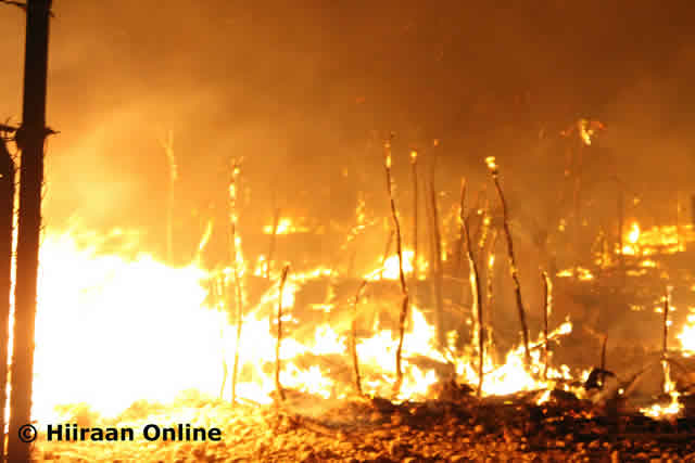 Jimco, September 14, 2012 (HOL) — Waxaa xalay saqdii dhexe gubtey kaam ay dad barakacayaal ahi ku dhaqan yihiin oo ku yaal xaafadda Biyo kulule ee bariga Magaalada Boosaaso, dabka oo ahaa mid xoogan, islamarkaana aan si dhab ah loo ogeyn waxa sababay ayaa hoy la'aan dhigey in ka badan 30 qoys.
