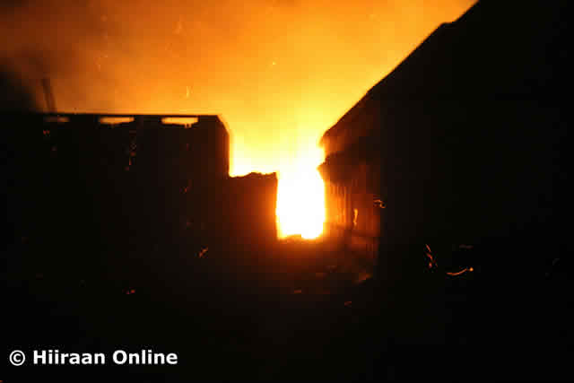 Waxaana ku basbeelay aqalo tira badan oo Buushash ah, kuwaas oo ka sameysnaa Baco iyo baakado inkasta oo aysan jirin cid dabkaas ay waxyeelo kasoo gaartey, marka laga reebo haweeney waayeel ah oo dhaawac yari uu lugta ka gaarey kadib markii ay isku dayday in ay gurigeeda oo gubanaya wax kala soo baxdo.