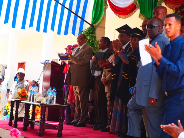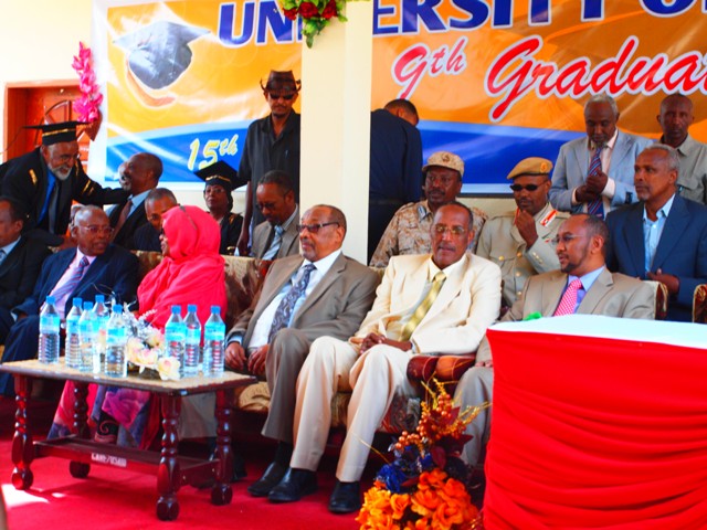 Gudoomiyaha jaamacadda Camuud Prof: Saleebaan Axmed Guuleed oo ku hadlayey afka jaamacadaha dalka ka jira, Gudomiyaha Xisbiga UCID Eng: Faysal Cali Waraabe, gudoomiyaha xisbiga KULMIYE Muuse Biixi Cabdi, wasiirka waxbarashadda Samsam Cabdi Aadan, oo madasha ka hadlay ayaa dhamaantood hambalyeeyey ardayda, una rajeeyey mustaqbal fiican.