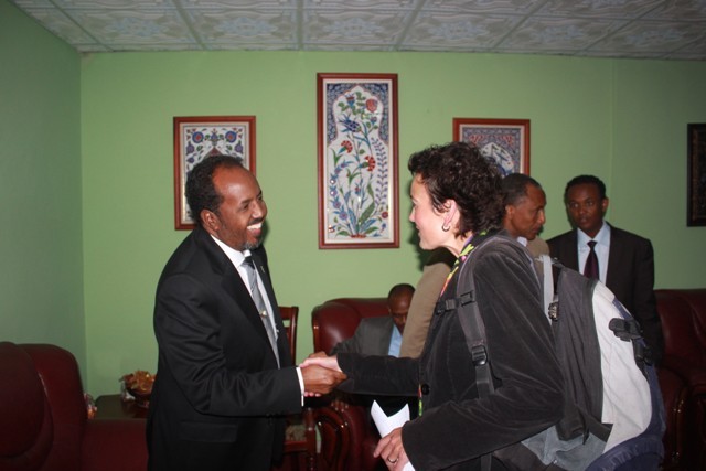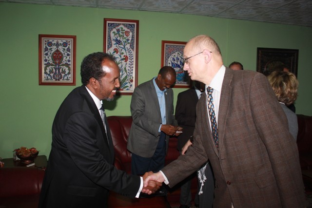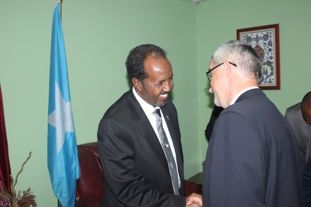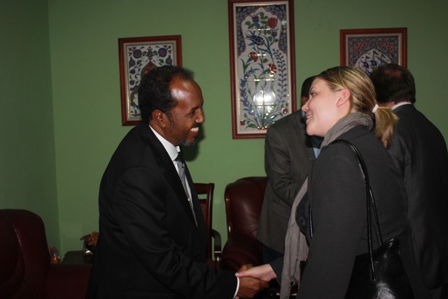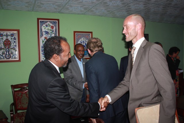Khamiis, September 20, 2012 (HOL) — Madaxweynaha Soomaaliya, Xasan Sheekh Maxamuud ayaa maanta kula kulmay garoonka diyaaradaha ee Muqdisho dajirayaal ka socday 14 dal oo isugu jira Yurub iyo Mareykanka, isagoo sharraxaad ka siiyay howlaha u qorsheysan dowladda cusub ee Soomaaliya.