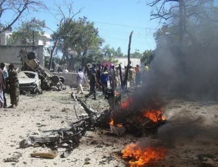 Khamiis, September 20, 2012(HOL): Labo qarax oo ay geysteen labo ruux oo naftooda halligay ayaa waxay goor dhaweyd ka dhaceen Baar lagu magacaabo Village oo ku yaalla meel u dhow gurigii hooyooyinka ee magaalada Muqdisho.