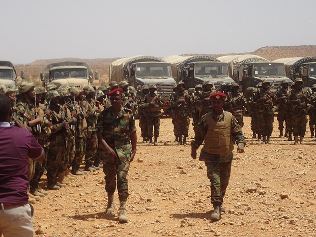 "Sida aad arkeysaan ciidamadu waxaa ay wataan saanad militari oo ay ku jiraan gadiidkii dagaallka, socod dheer ayeey soo galeen oo dhulka ah, waxaana ay u socdaan sidii ay qeyb uga noqon lahaayeen howlgalka guud ahaan laga wado dalka Soomaaliya ee midowgga Africa ‘’’AMISOM’’ si gaar ah gobollka Hiiraan ayeey ciidamada uga howlgali doonaan, wali waxaa jira tiro ciidamada ka tirsan oo dhiman iyaguna maalmaha soo socda ayaa la keeni doonaa," ayuu yiri Col. Cismaan Dubad.