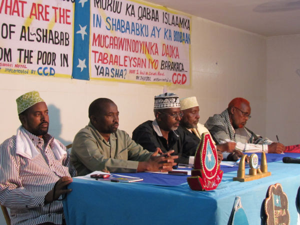 Sheekh C/qaadir Sh. Maxamed (Sheekh Soomow) oo ka mid ah Ahlsuunna oo hadal ka jeediyay kulanka ayaa sheegay inaysan diinta Islaamku ogoleyn in la dhaco deeq ama gargaar loogu talogalay dad dhibaateysan, isagoo Al-shabaab ku eedeeyay in ay dhacdo gargaarka bani'aadamnimo.