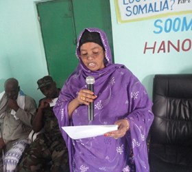 Sahro Macallin Bashiir oo ka mid ahayd ardaydii ka baxay Jaamacaddii Ummadda oo iyaduna kulanka ka hadashay ayaa sheegtay in haweenka Soomaaliyeed ay door muhiim ah ku leeyihiin wax ka qabashada dalka, waxayna sheegtey in 20-kii sano ee dagaalladu ka jireen dalka ay haweenku ahaayeen kuwa ka dhex-muuqda bulshada sida daryeelka qoyskooda, dib u heshiisinta, waxbarashada, waxayna ka codsatay Yuusuf Garaad inuu garab siiyo haweenka Soomaaliyeed maadaama ay ku dulman yihiin dhinaca Siyaasadda.