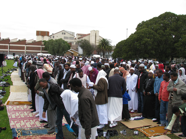 Axad, Ogoosto 19, 2012 (HOL) — Magaalada Cape-town ee dalka Koofur Afrika ayaa si weyn loogu soo baxay salaadda ciidda, iyadoo muslimiin aad u fara badan oo Soomaali ay ku jirtay ay buux-dhaafiyeen barxadaha lagu oogayay salaadda ciidda oo ku kala yaalla gudaha iyo duleedada magaaladaas.