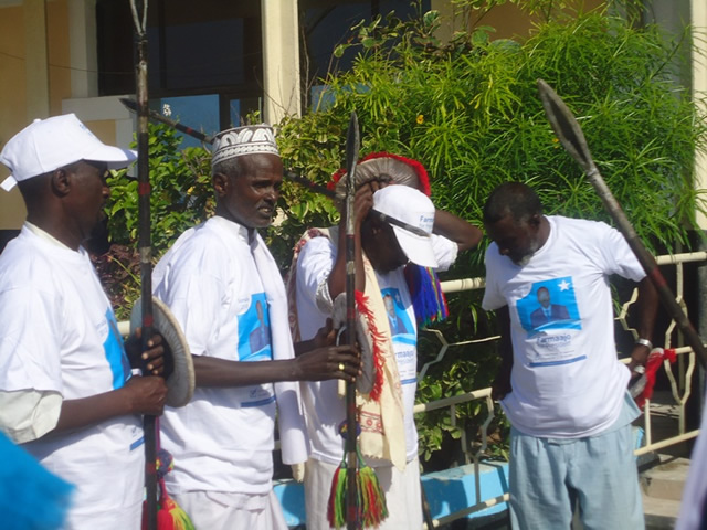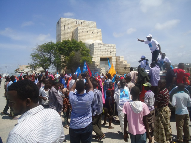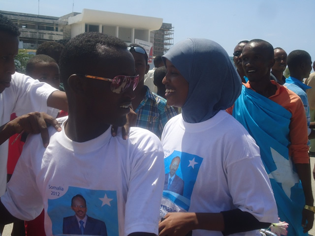 Dadweyne fara badan oo wata sawirkiisa iyo calanka Soomaaliya ayaa kusoo dhaweeyay garoonka diyaradaha Muqdisho ee Aaadan Cadde, iyadoo sidoo kalena ay magaalada ka dhaceen dibadbaxyo lagu taageerayo imaanshihiisa, kuwaasoo ay dhigayaan qaybaha kala duwan ee bulshada.