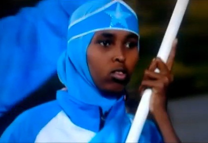 Orodyahannada Soomaaliyeed ee Zamzam Cali Faarax iyo Maxamed Xasan Maxamed oo ay wehliyaan mas’uuliyiin ka tirsan Guddiga Olombikada Soomaaliyeed iyo mas’uuliyiin kale oo Isboorti ayaa calanka ku soo bandhigtay furitaanka ciyaaraha Olombikada Adduunka ee London.