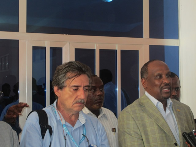 Axad, May 06, 2012 (HOL): Wasiirka Qorsheynta iyo Xiriirka Caalamiga Cabdulahi Goodax Barre ayaa maanta xafiiskiisa ku qaabilay Stefano Porretti oo ah Wakiilka Wadamada ee WFP. Kulanka labada dhinac ayaa waxaa looga hadlayay arrimaha gargaarka iyo kuwa bini’aadanimo sidii wax looga qaban lahaa.