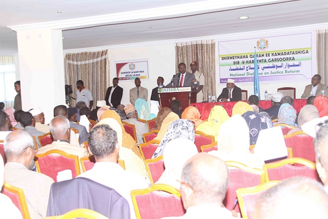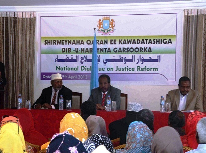 Isniin, Abriil 01, 2013 (HOL) — Madaxweyne Xasan Sheekh Maxamuud ayaa si rasmi ah u furay goor-dhaweyd shirweynaha dib u habeynta garsoorka dalka oo socon doona muddo shan maalmood ah, kaasoo looga hadlayo sida ugu habboon ee garsoorka loogu kalsoonaan karo.
