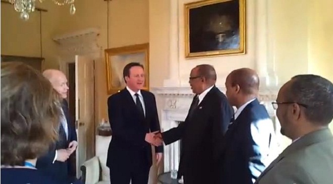Khamiis, Abriil 18, 2013 (HOL) — Madaxweynaha Somaliland Mudane, Axmed Maxamed Maxamuud (Siilaanyo), ayaa xalay cawayskii la kulmay Ra’isal wasaaraha Ingiriiska David Cameron, kuwaas oo ka wadda hadlay ka qaybgalka shirka London ka dhici doona bisha May ee soo socota.