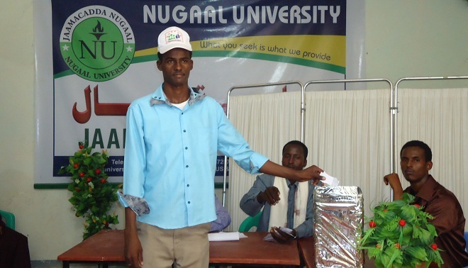 Arbaco, Abriil 24, 2013 (HOL) — Munaasabad lagu dooranayay guddoomiyaha ururka ardayda jaamacadda Nugaal ayaa lagu qabtay xarunta jaamacadaasi ee magaalada Laascaanood xarunta gobolka Sool.