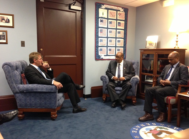Arbaco, Abriil 24, 2013 (HOL) — Madaxweynaha Somaliland Mudane, Axmed Maxamed Siillaanyo, ayaa xarunta baarlamaanka Maraykanka kula kulmay senator Jeff Flake oo ka mid ah golaha sanetka u qaabilsan Arrimaha Afrika.