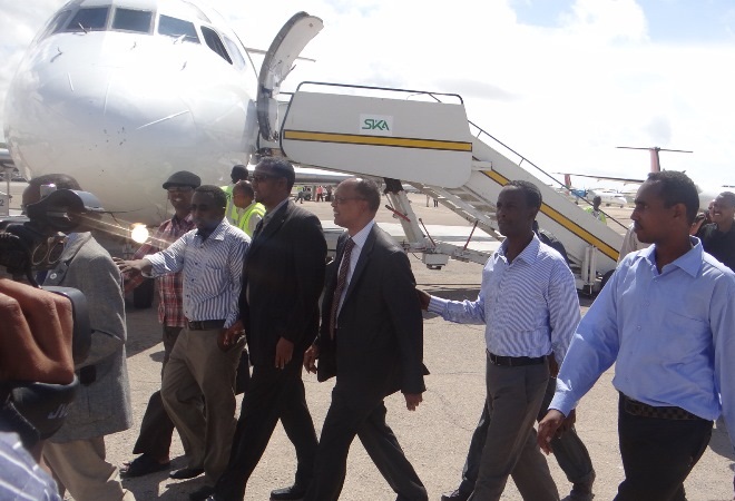 Khamiis, Abriil 25, 2013 (HOL) — Wasiirka wasaaradda maaliyadda iyo qorshaynta dowladda Soomaaliya, Maxamuud Xasan Sulaymaan iyo wafti uu hoggaaminayo ayaa saaka dalka dib ugu soo laabtay kaddib markii uu kasoo qayb-galeen shirkii hay’adda lacagta adduunka ee IMF-ta oo Washington lagu qabtay.