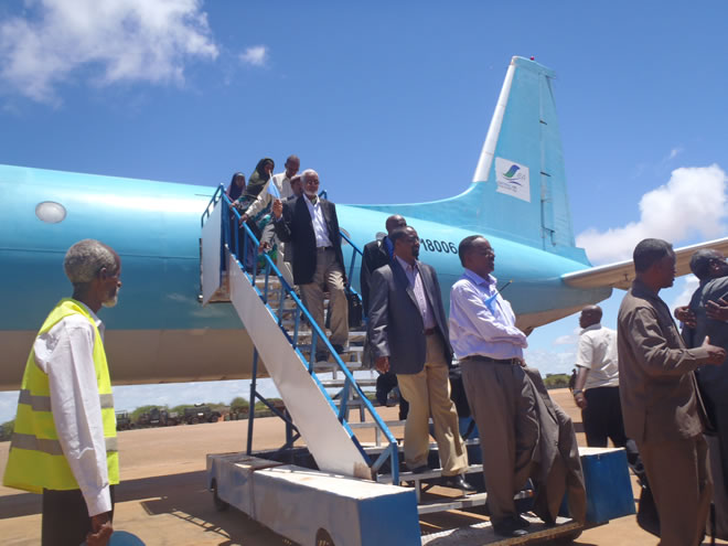 Arbaco, 03 April, 2013 (HOL) :- Ku dhawaad ilaa 44 Xildhibaan oo ka tirsan golaha baarlamanka Soomaaliya ayaa maanta kasoo dagay garoonka caalamiga ah ee magaalada Kismaayo iyadoona ay halkaasi si diiran ugu soo dhaweeyeen masuuliyiinta maamulka KMG ee Kismaayo.