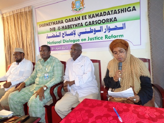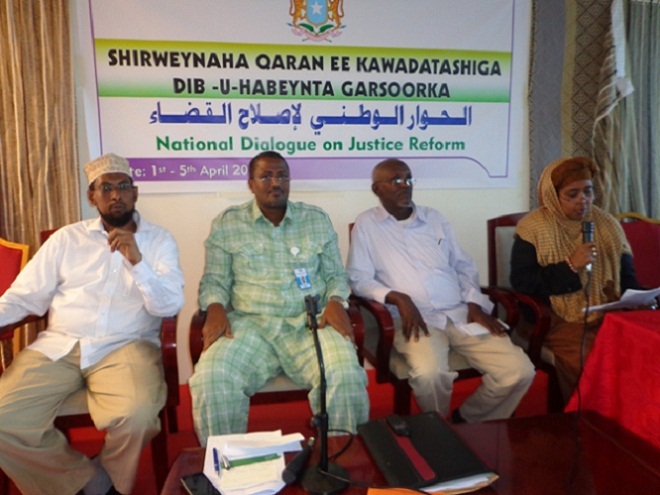 Khamiis, Abriil 04, 2013 (HOL) — Guddiyadii ay iska dhex-doorteen ergada ka qaybgalaysa Shirweynaha heer looga tashanayo dib u habeynta garsoorka dalka ayaa maanta si saraaxad leh looga dooday talooyin ay aragti ahaan u soo jeediyeen guddiyadii afarta ahaa ee loo xil-saaray inay kasoo talabixiyaan arrimo la xiriira qawaaniinta iyo qaab dhismeedka garsoorka Soomaaliya kuwaasoo muddadii labada maalmood ee lasoo dhaafay ay ka doodayeen.
