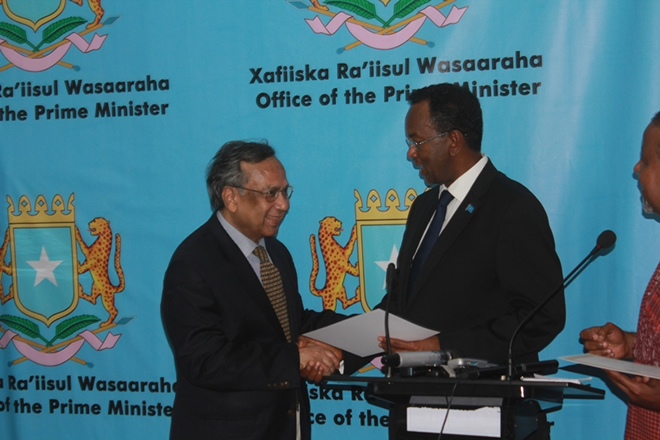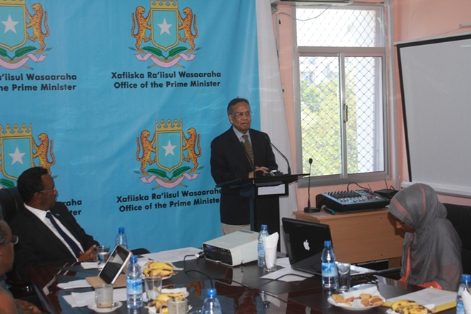 Ra’iisul wasaaraha Soomaaliya iyo Dr. Shamsul Bari oo shir jaraa’id oo si wadajir ah u qabtay ayaa isla qeexay in laga billaabo maanta uu yahay dhaqangal qorshahan geeddi-socodka xaquuqda aadanaha Soomaaliya.