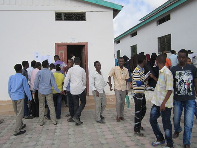 Khamiis, August 29, 2013 (HOL) — Xarunta Dr. Shahiid ee Jaamacada Banaadir oo ku taalla deegaanka KM-13 ee duleedka Muqdisho ayaa waxaa maanta lagu qabtay imtixaanka ogolaanshaha ama qubuulka ee ardayda ku biiraysa jaamacadda oo ay u fariisteen ku dhawaad kun arday.