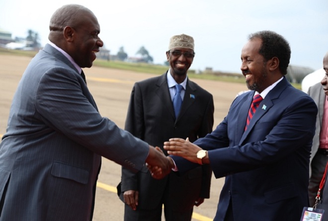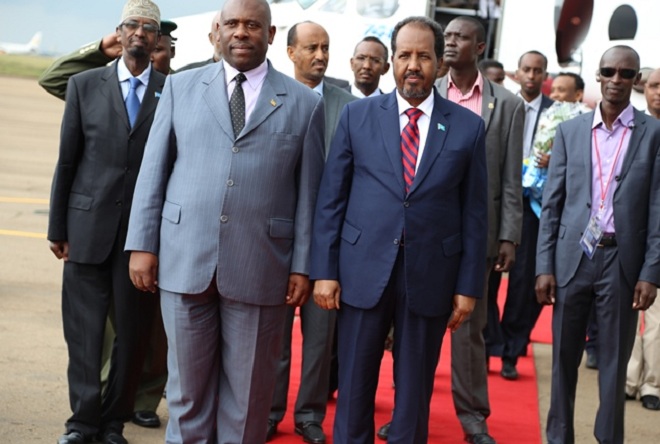 Sabti, August 03, 2013 (HOL) — Madaxweynaha Soomaaliya, Xasan Sheekh Maxamud iyo wafdi uu hoggaaminayo ayaa soo gaaray magaalada Kampala ee xarunta dalka Uganda si ay uga qayb-galaan shirka dalalka ay ciidamada AMISOM ka joogaan Soomaaliya.