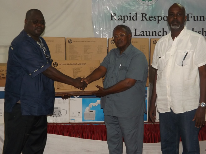 Sabti, August 31, 2013 (HOL) — Hay’adda Conflict Early Warning Mechanism (CEWARN) oo ah hay’ada ka digta colaadaha ka dhaca xuduudaha dalalka xubnaha ka ah urur goboleedka IGAD ayaa ugu deeqday hay’adda Somalia CEWERU oo ah hay’ad ka digta colaadaha, isla markaasna ka jawaabta qalab isugu jira toddoba kambiyuutar iyo toddoba birintar.