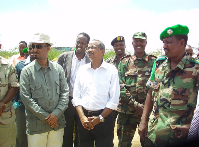 Jimco, August 09, 2013 (HOL) — Wasiirrka gaashaandhiga jamhuuriyadda Jabuuti, Xasan Dharaar Hufane iyo xubno saraakiil ah oo uu horkacayo ayaa maanta gaaray magaalada Baladweyne ee xarunta gobolka Hiiraan oo ay ka howlgalaan ciidamo ka socda dalka Jabuuti ee qeyb ka ah howlgalka midowgga Africa AMISOM.
