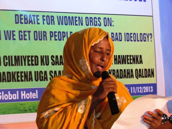 Guddoomiyaha qaybta haweenka ee hay’adda CCD, Sahro Maxamuud Amiin ayaa sheegtay in kuwa nabadda diiddan ay yihiin caada-qaatayaal, waxaana ay xustay in haweenka aanay nabadda kasoo horjeedin ayna taageersan yihiin nabadda.