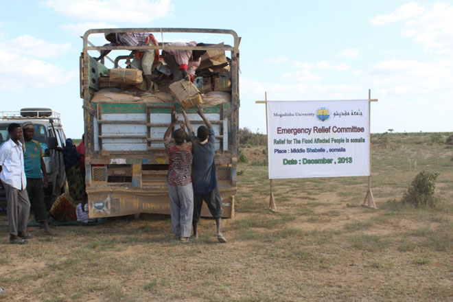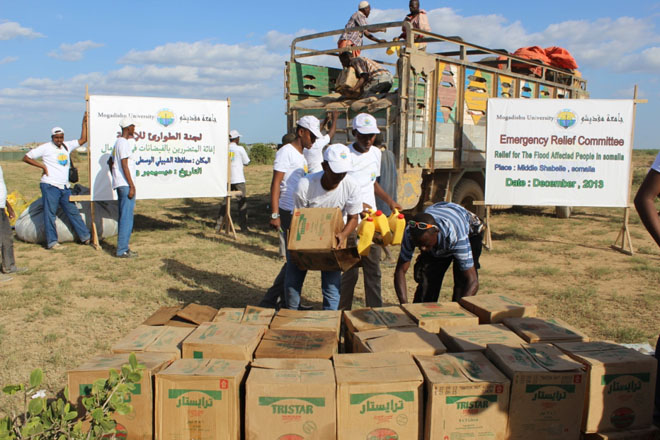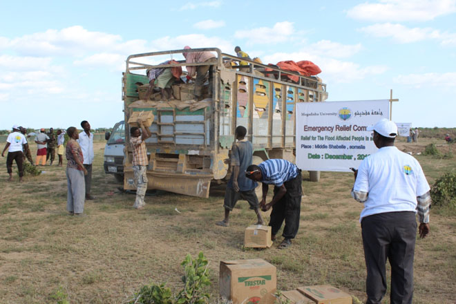Axad, December 15, 2013 (HOL) — Guddiga gurmadka deg-degga ah ee Jaamacadda Muqdisho ayaa gaarsiiyey deeq isugu jrta barsii, sokor, saliid, timid iyo dhar dadkii ay samaaeynta ku yeesheen fatahaadda webiga Shabeelle uu ka geystay gobolka Shabeellada dhexe.