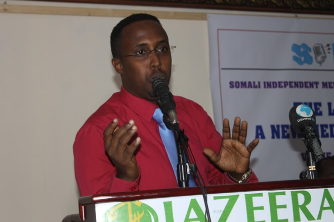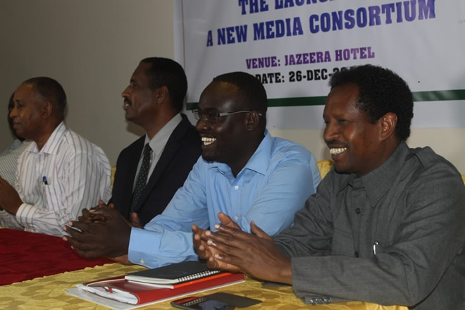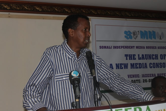 Jimco, December 27, 2013 (HOL) — Urur ay ku midoobeen ku dhawaad 20 idaacadood ayaa shalay oo Khamiis ahayd looga dhawaaqay Hoteel Jazeera ee magaalada Muqdisho, waxaana goob-joog ka ahaa wasiirka warfaafinta, boostada isgaarsiinta iyo gaadiidka Soomaaliya, Cabdulllaahi Ciilmoge Xirsi, afhayeenka madaxtooyada Inj. C/raxman Yarisow, afhayeenka xukuumadda, Ridwaan X. C/weli, afhayeenka gobolka Banaadir, Maxamed Yuusuf Cismaan, afhayeenka booliiska Soomaaliyeed, xildhibaanon, ururrada bulshada rayidka iyo ururka suxufiyiinta qaranka Soomaaliyeed ee NUSOJ.
