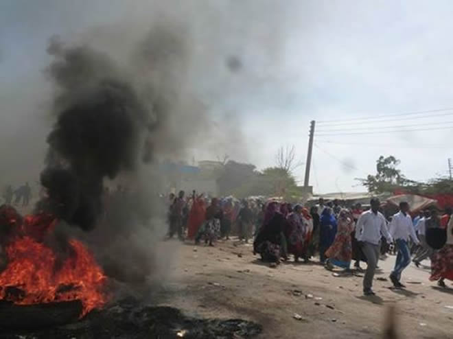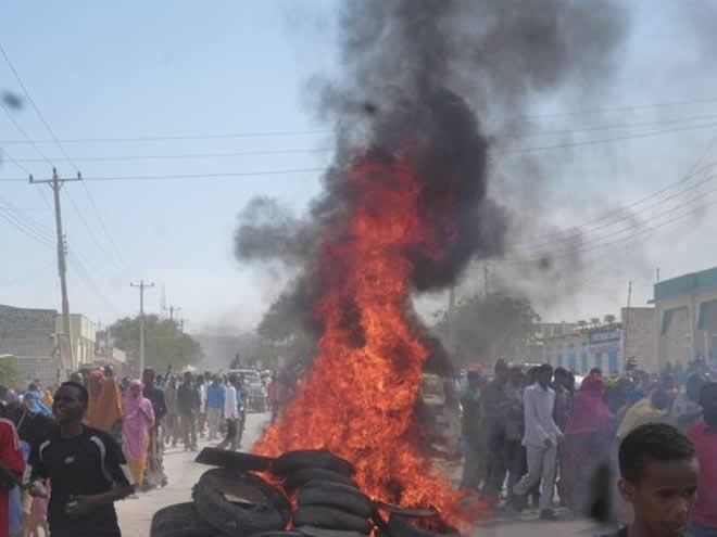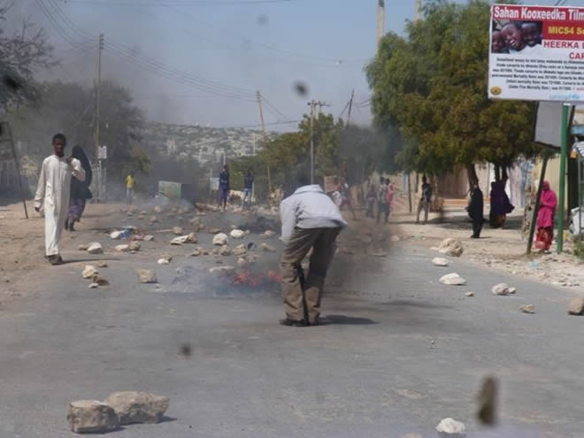 dadweynaha degmooyinka Maxamuud Haybe iyo Axmed Dhegax ayaa wadooyinka ku xidhay dhagxaan iyo Taayiro, haseyeeshee waxa rasaas badan ku riday ciidanka Booliska oo doonayey inay dadka kala dareeriyaan, waxaase dadkii dhexgalay dajiyey wasiirka Arrimaha gudaha iyo Taliyaha Booliska C/laahi Fadal, isla markaana ciidankii Booliska ridayey ku amray inay rasaasta joojiyaan, waxaanu dadweynuhu u sheegay inay Booyadihii ku heshiiyeen inay shaqadoodii dib u bilaabayaan.