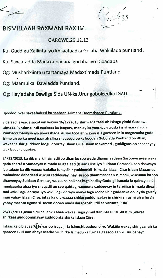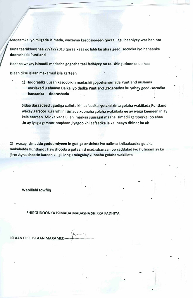 Axad, December 29, 2013 (HOL) — Waxaa soo shaac baxay khilaaf xooggan oo u dhexeeya isimmada Puntland, xilli lagu howlan yahay dhismaha Guddiga Marjaca ah ee Isimmada, guddigaas oo dusha kala socon doona shaqada Guddiga Xallinta Khilaafaadka iyo Ansixinta Xildhibaanada.