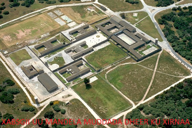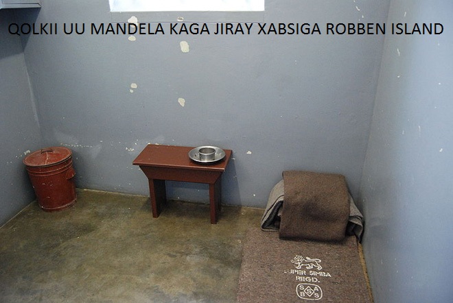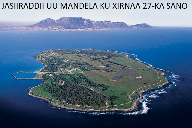 Waxaa markii dambe xabsiga dhigay dowladdii midab-kala-sooca ahayd ee ay xukumayeen caddaanka waddanka gumeysanayay; iyagoo ku eedeeyay inuu waday abaabul kasoo horjeeda dowladdooda wuxuuna soo dhameystay 27-sano oo xabsi ah oo uu kusoo kala qaatay dhowr xabsi oo ku yaalla dalka Koofur Afrika, hase ahaatee wuxuu xabsigiisa inta badan ku qaatay jasiirada Robben island oo ku dhex taalla badda Atlantic-ga oo ku dhow xeebta Cape Town, wuxuna halkaa kula kulmay jir-dil aad xooggan iyo ciqaab kala duwan illaa markii dambe uu ku dhacay cudurka qaaxada ama TB-da.