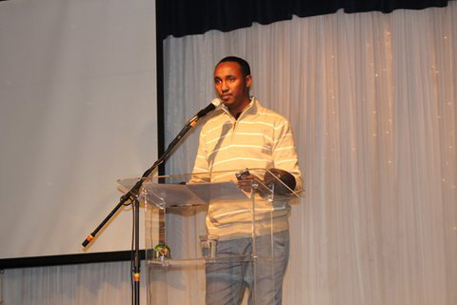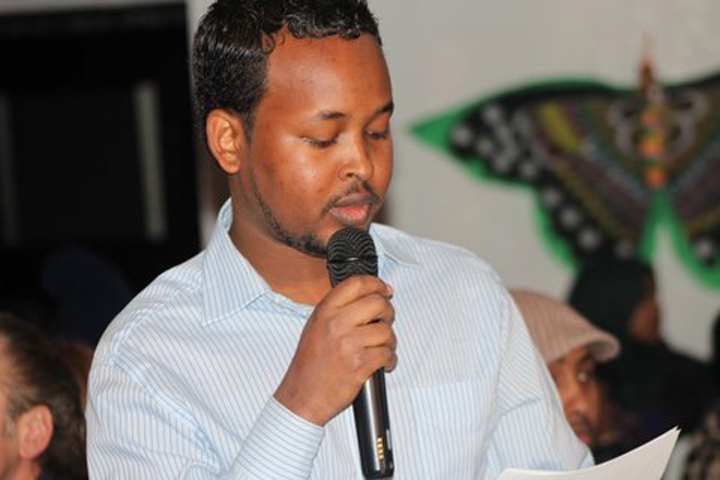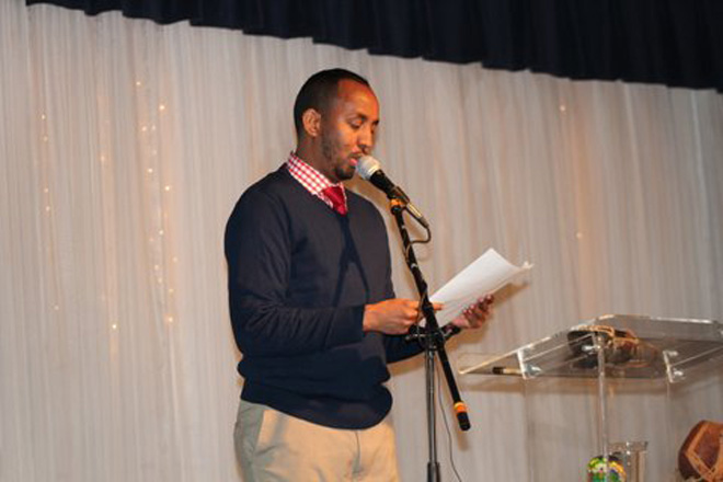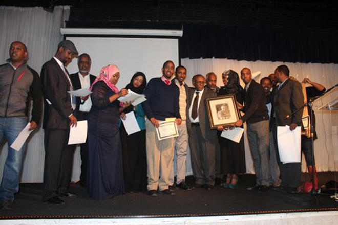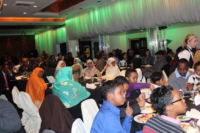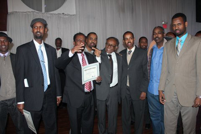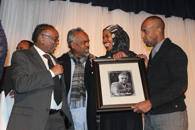 Axad, December 08, 2013 (HOL) — Waxaa hoolka shirarka ee Jaamacadda University of Minnesota ee magaaladda Minneapolis ka dhacday xalay xaflad casho sharaf aheyd oo ay soo qaban qaabiyeen Meertada Aqooneed ee Keydinta Suugaanta iyo Naadiga Hal-abuurka Soomaaliyeed ee Somali Speaking Pen, taas oo lagu nooleynayay Suugaanta iyo Afka, isla markaana lagu sharfayay Macaallin Siciid Saalax.