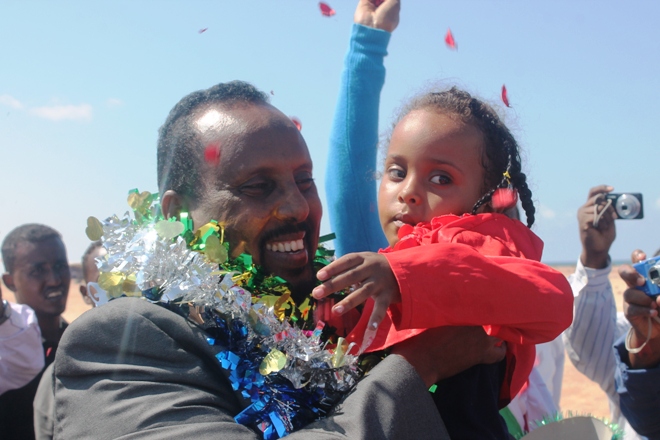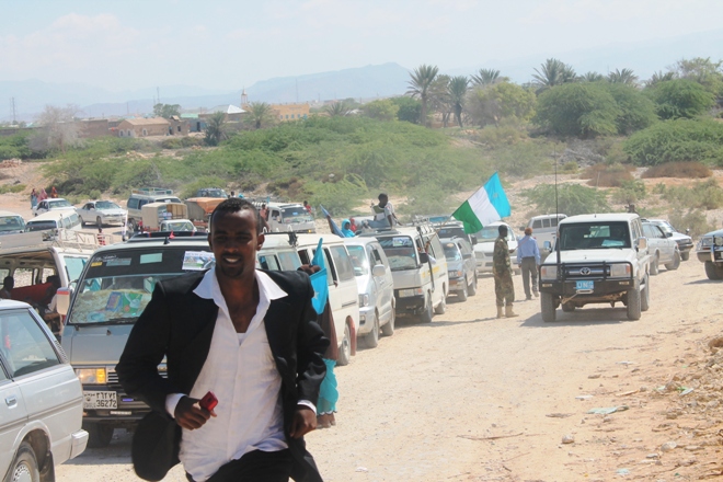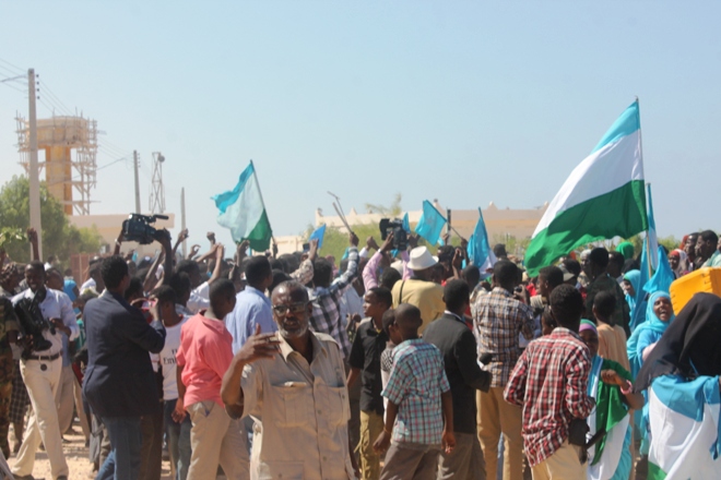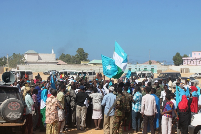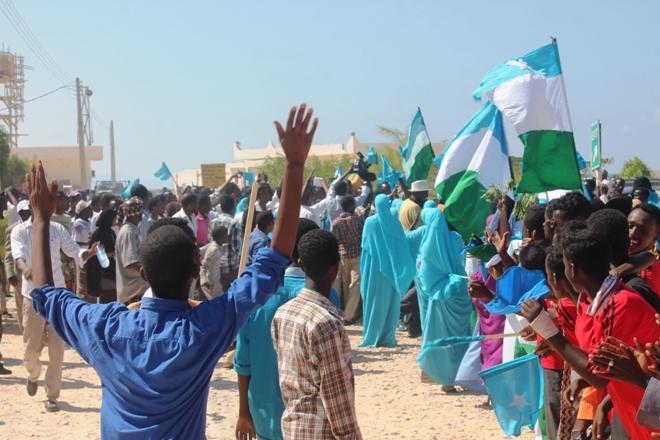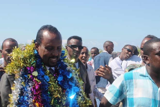 Axad, December 08, 2013 (HOL) — Magaalada Boosaaso ee xarunta gobolka Bari, waxaa maanta si weyn loogu soo dhoweeyey Cali Cabdi Awaare oo ah musharrax u taagan xilka madaxweynenimo ee Puntland.