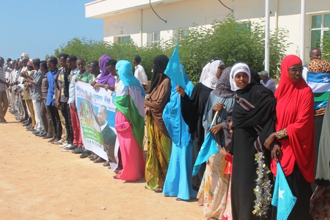 Dadweyne boqollaal gaaraya oo isugu jira siyaasiyiin, aqoonyahan, isimmo, haween iyo dhalinyaro, ayaa mushrrax Awaare kusoo dhoweeyey garoonka diyaaradaha ee magaalada Boosaaso.