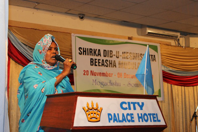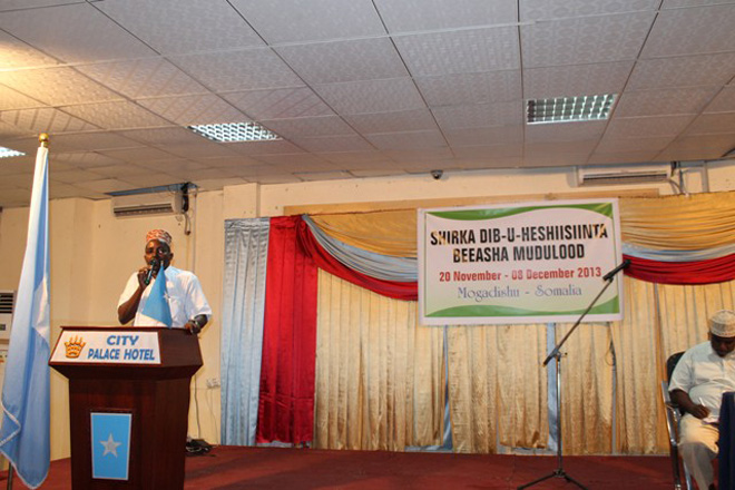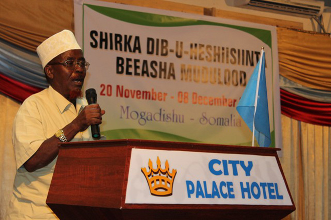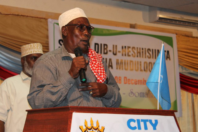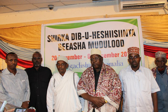 "Waxaa maanta lagu soo gaba-gabeeyay magaalada Muqdishu kulan dib-u-heshiisiin ahaa oo muddo u socday beesha. Shirkan gabagabada ah waxaa kasoo qaybgalay ergooyin ka kooban 170 oo ka socday beelaha oo dhan, kana koobnaa oday-dhaqameedyo, culummo, haween iyo aqoonyahanno, waxaa kasoo baxay qodobbo badan," ayuu yiri Ugaas Maxamuud.