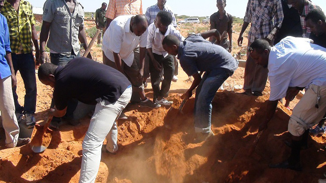 Dhamaan mas'uuliyiintii iyo dhinacyadii kasoo qayb-galay aaska wariye Cali Suldaan ayaa hadallo tacsi ah ka jeediyay qabuuraha lagu aasay oo barriga Gaalkacyo ku yaalla, iyagoo Rabbi ugu baryay wariyaha inuu u naxariisto.