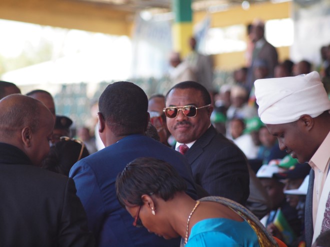 Intaa kaddib waxaa goobta khudbad ka jeediyay ra’iisul wasaaraha Itoobiya, Hailemariam Desalegn, isagoo hambalyo u diray qowmiyadaha Itoobiya ku nool, wuxuuna ugu horreyn u mahadceliyay ra’iisul wasaarihii hore ee dalka Itoobiya, Males Zanawi oo uu ku sheegay ruuxii ka dambeeyay in Itoobiya ay ku tallaabsato hormar caynkan oo kale ah.